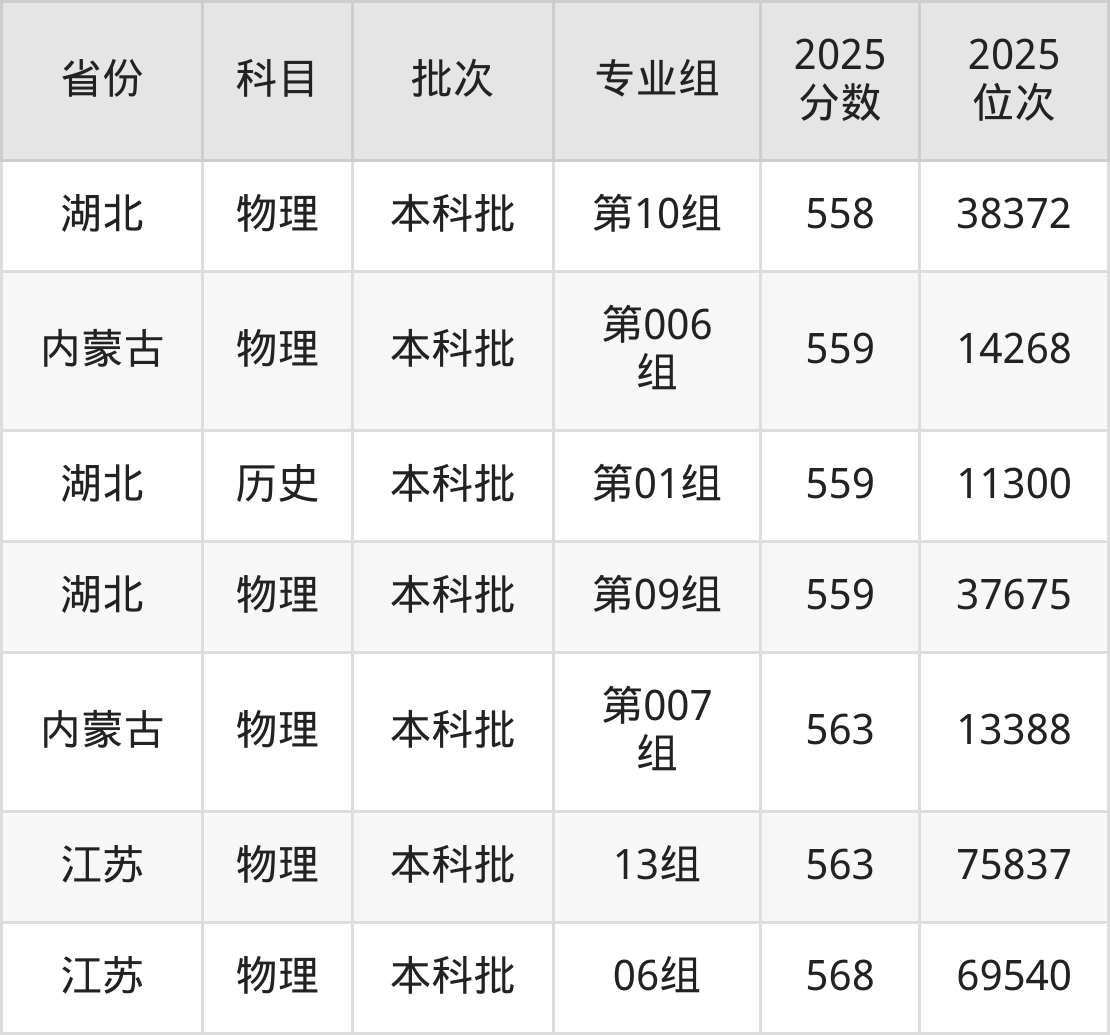 最高录取分数线是559分,对应位次是11300名,招生地区为湖北。
