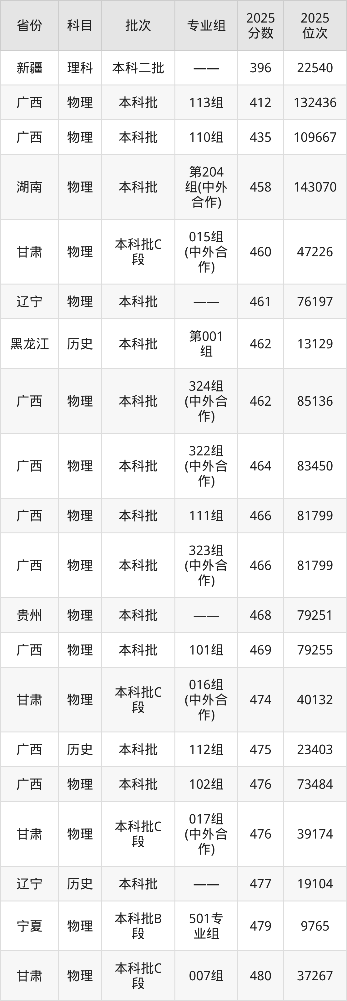 最低录取分数线是396分,对应位次是22540名,招生地区为新疆;