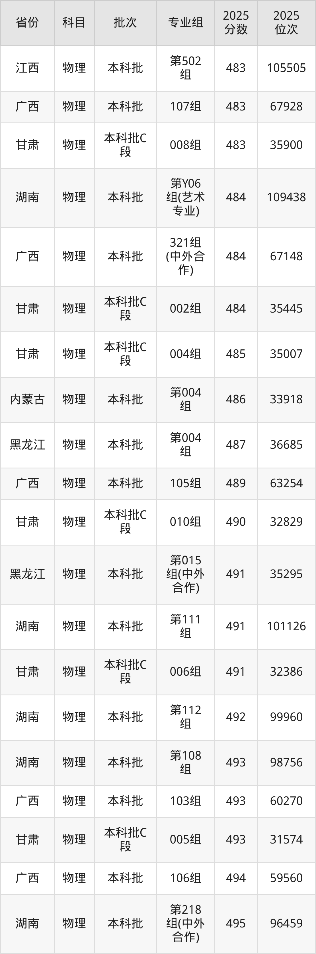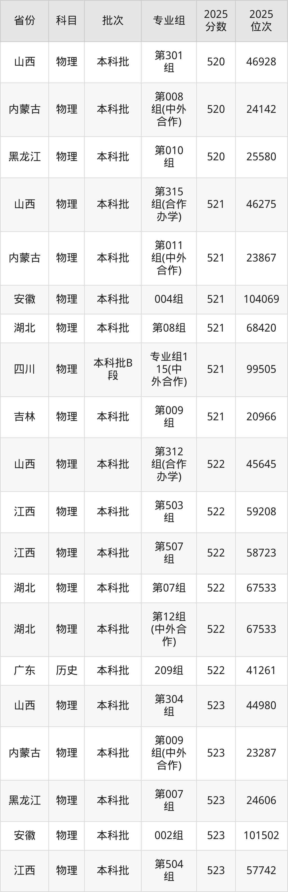 2025年大连工业大学在各省普通批录取分数线一览表: