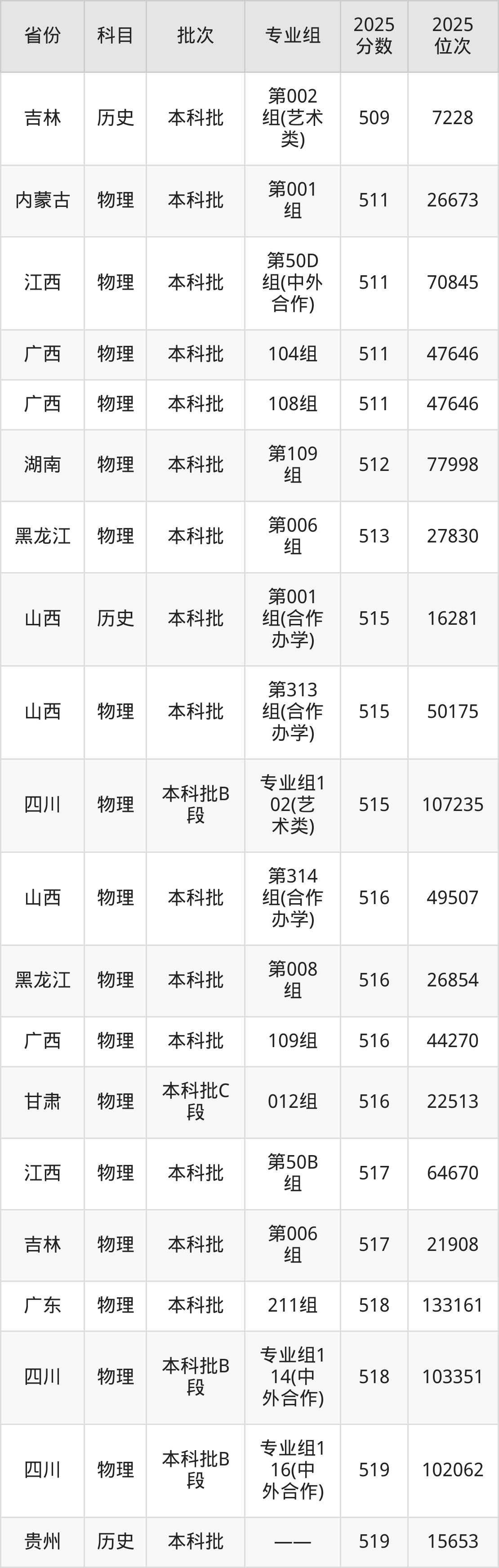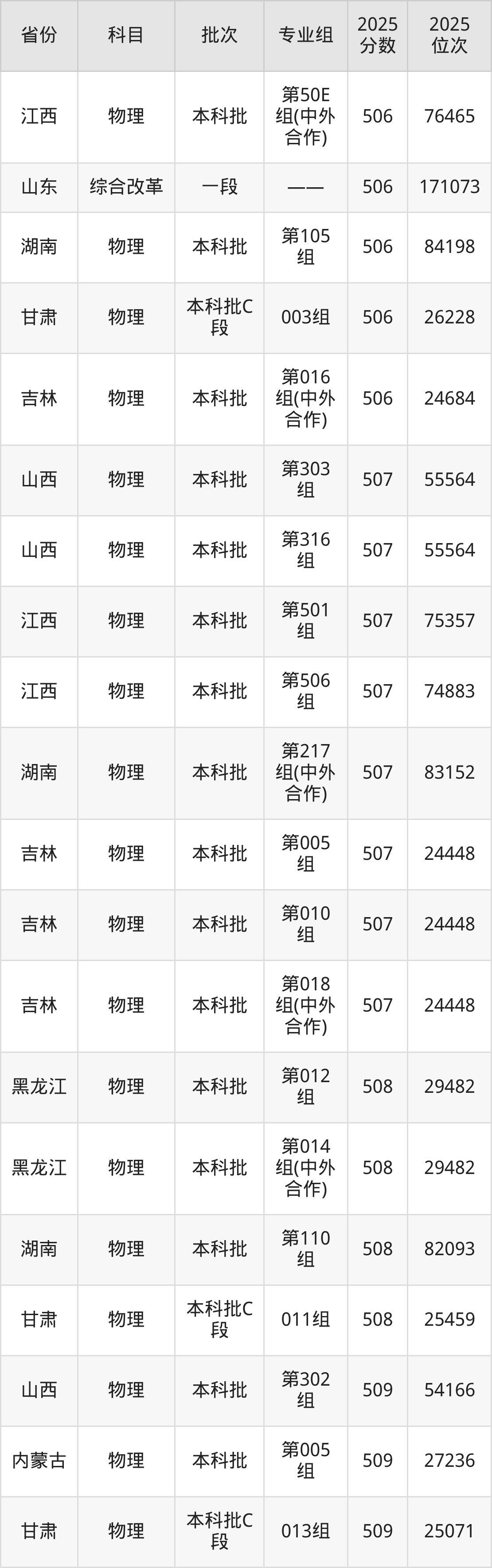 最低录取分数线是506分,对应位次是171073名,招生地区为山东;