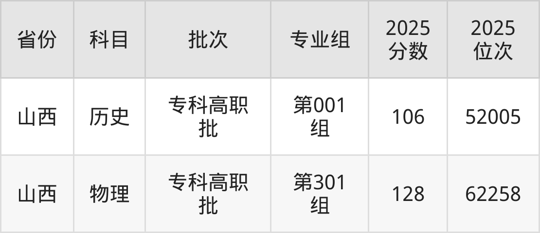 最低录取分数线是128分,对应位次是62258名,招生地区为山西。
