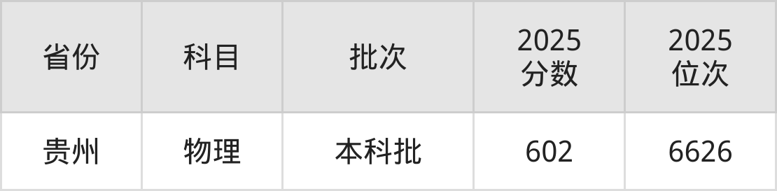 最低录取分数线是602分,对应位次是6626名,招生地区为贵州。