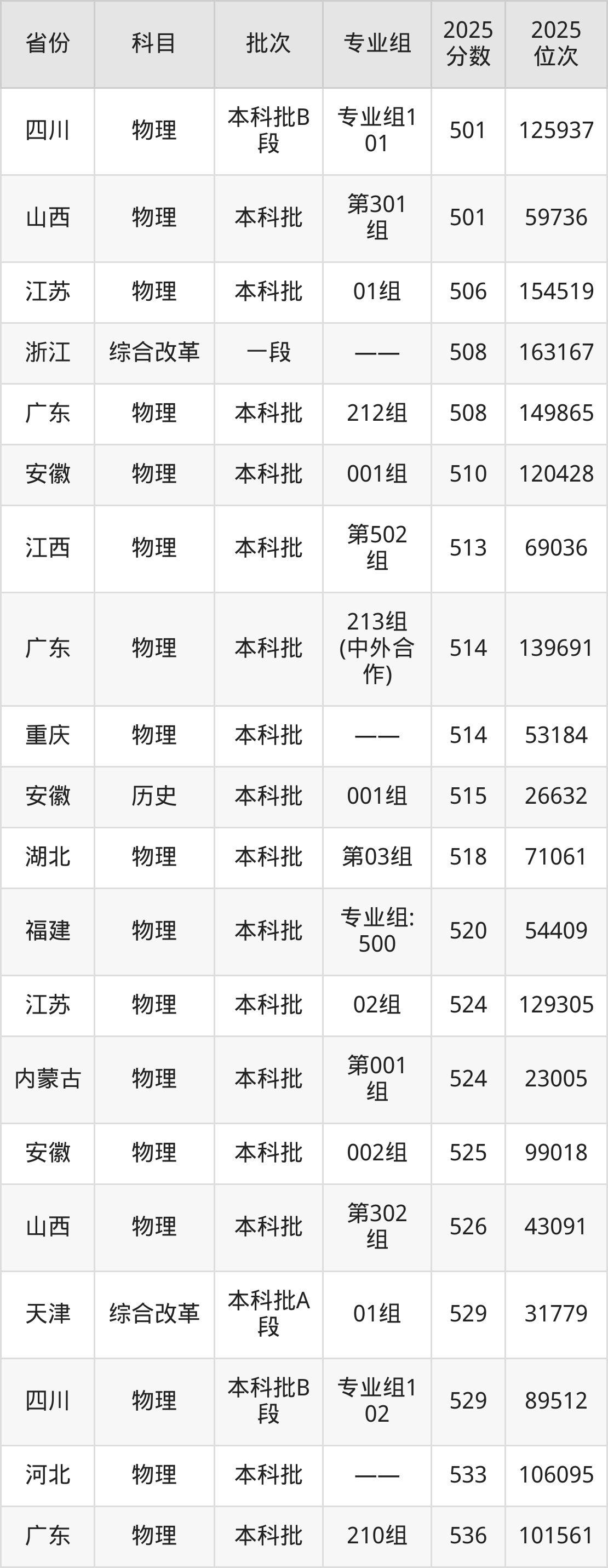 2025年沈阳化工大学在各省普通批录取分数线一览表: