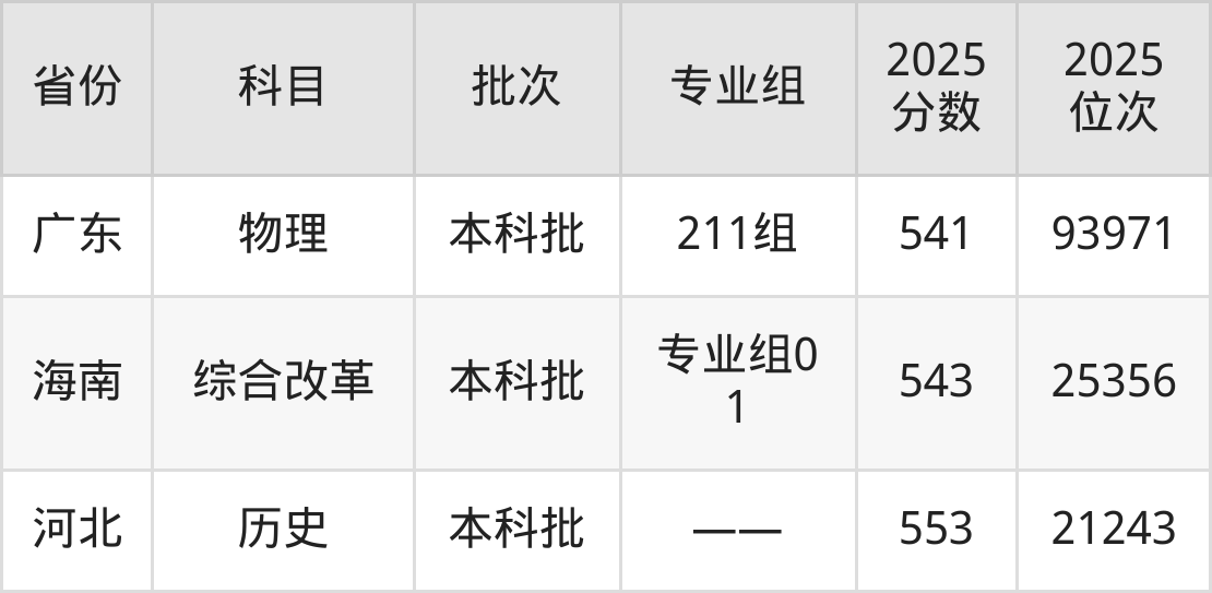 最高录取分数线是543分,对应位次是25356名,招生地区为海南。