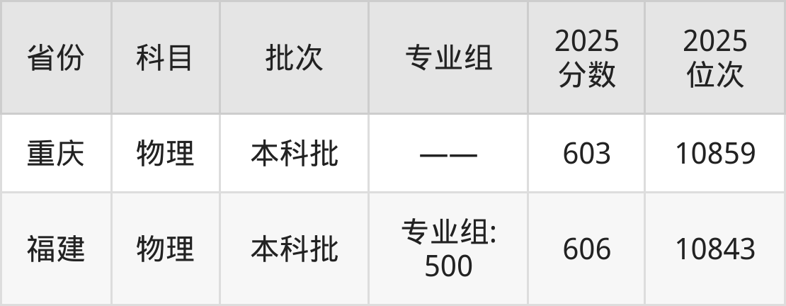 最低录取分数线是603分,对应位次是10859名,招生地区为重庆;