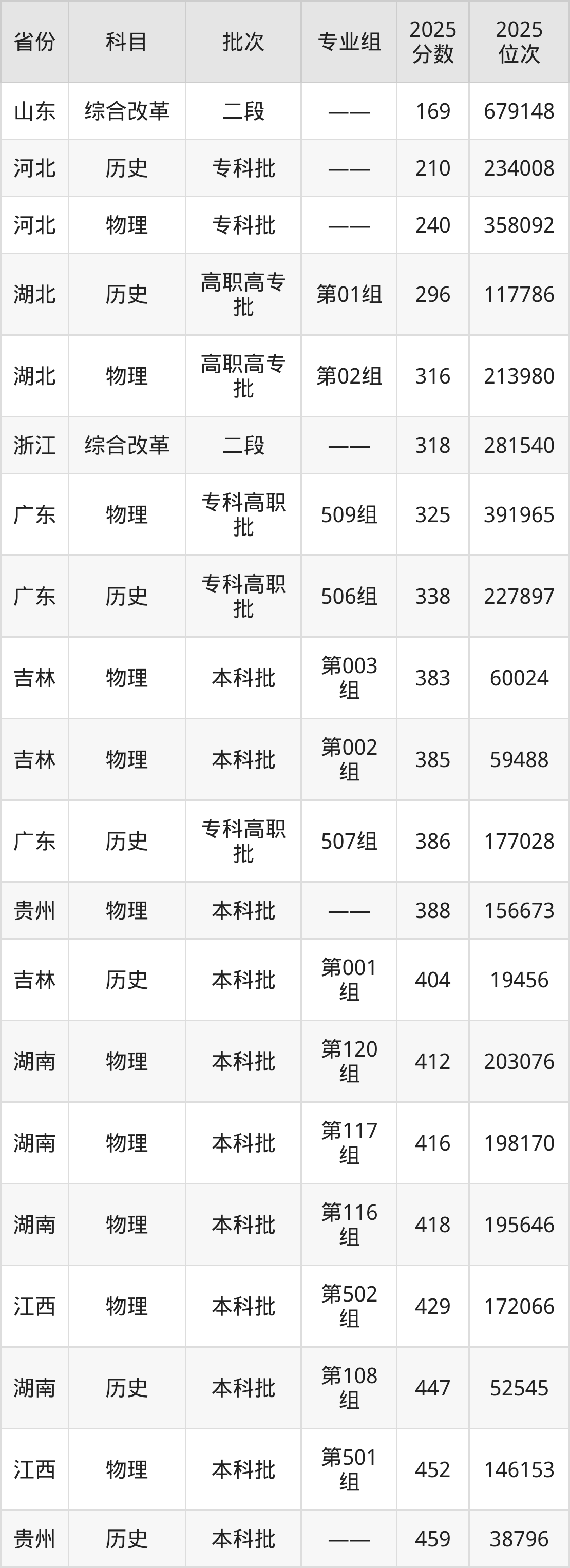最低录取分数线是169分,对应位次是679148名,招生地区为山东;