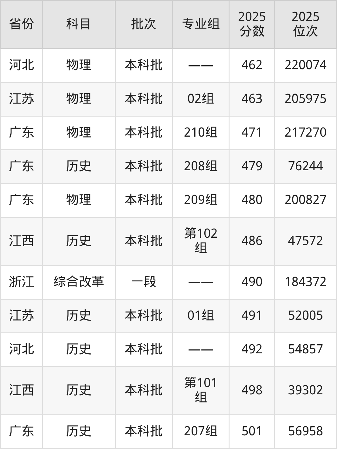 最高录取分数线是501分,对应位次是56958名,招生地区为广东。
