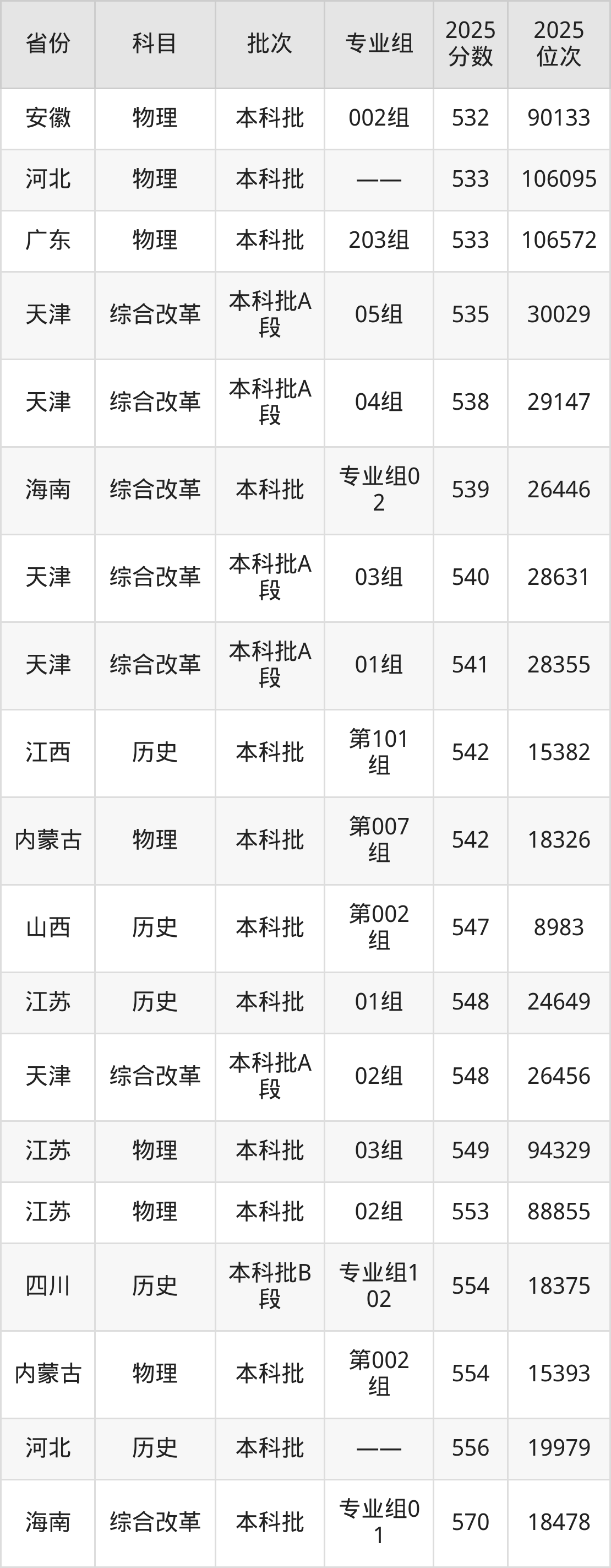 2025年天津职业技术师范大学在各省3+3综合改革的录取分数线位于432分-570分之间。