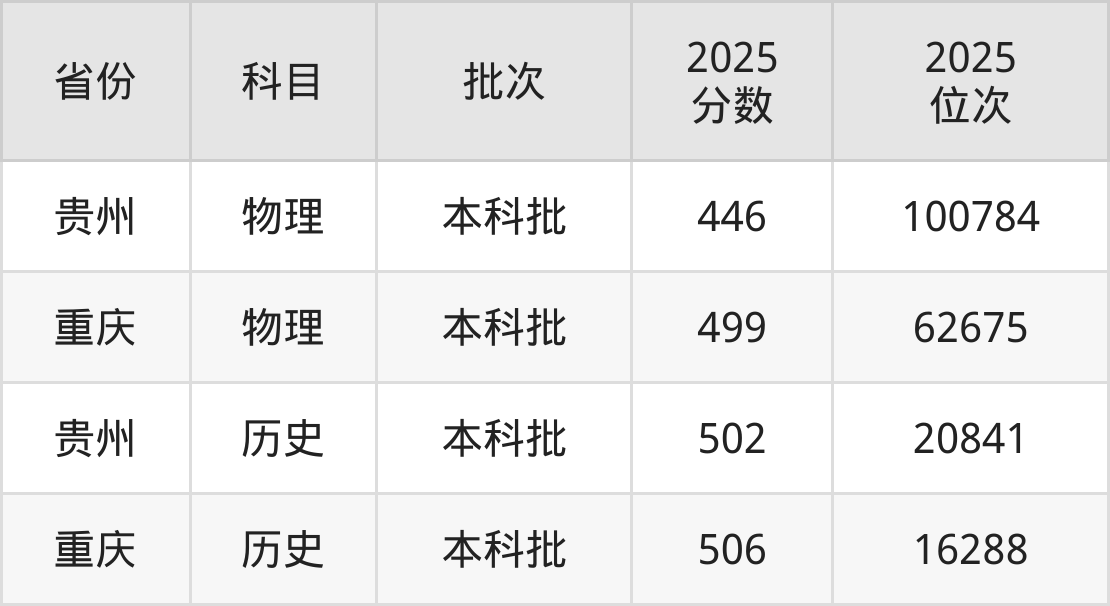 最低录取分数线是502分,对应位次是20841名,招生地区为贵州;