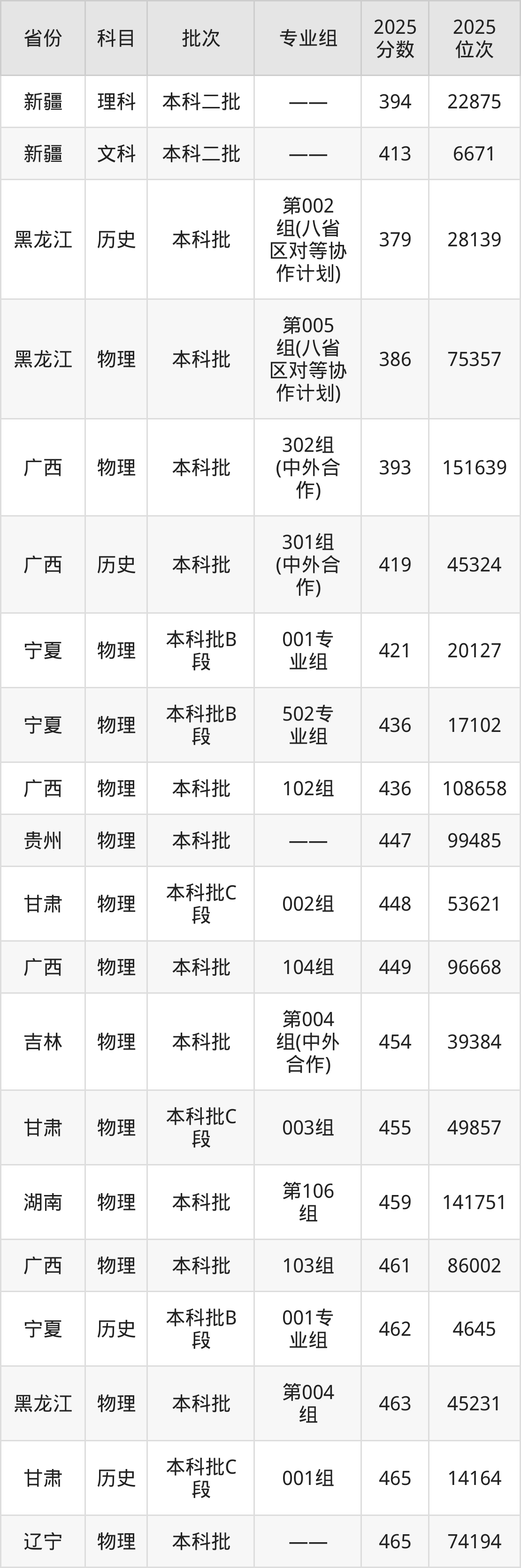 最低录取分数线是379分,对应位次是28139名,招生地区为黑龙江;
