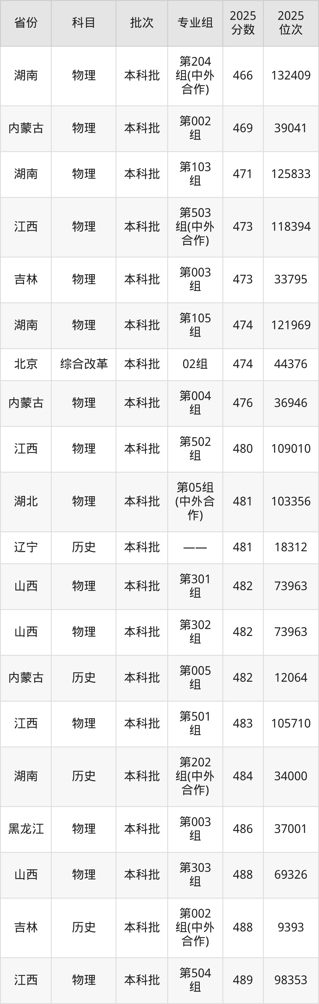 2025年河北金融学院在各省普通批录取分数线一览表: