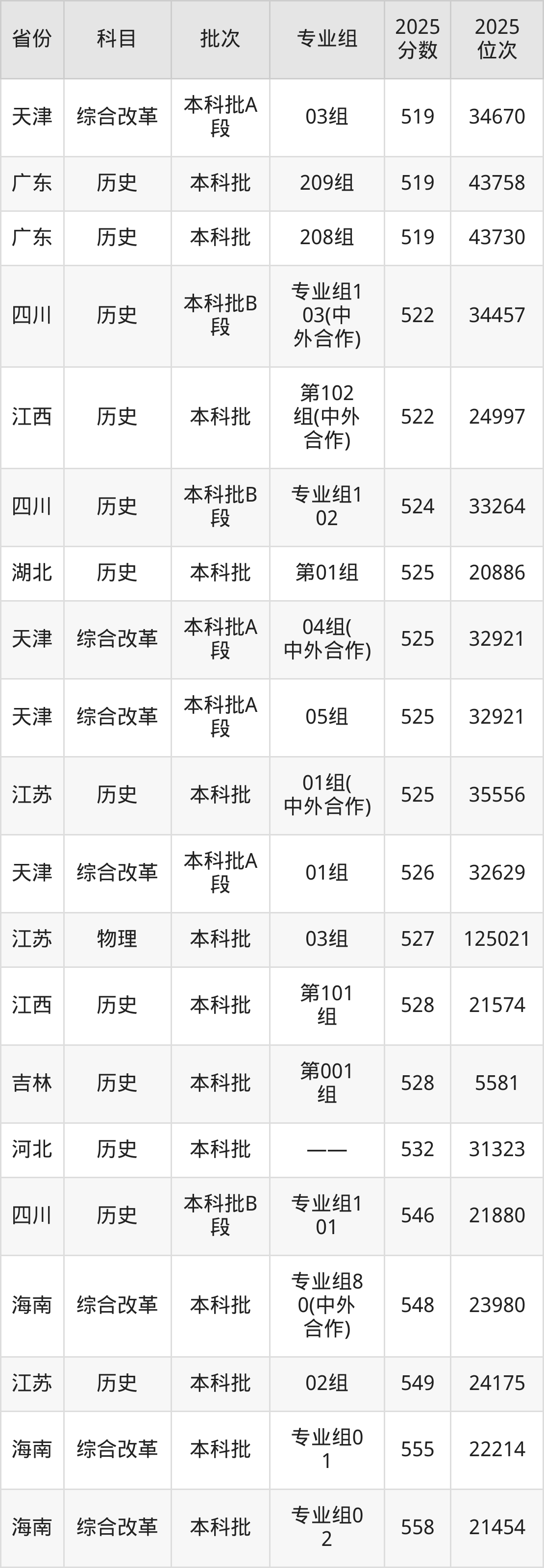 最高录取分数线是549分,对应位次是24175名,招生地区为江苏。