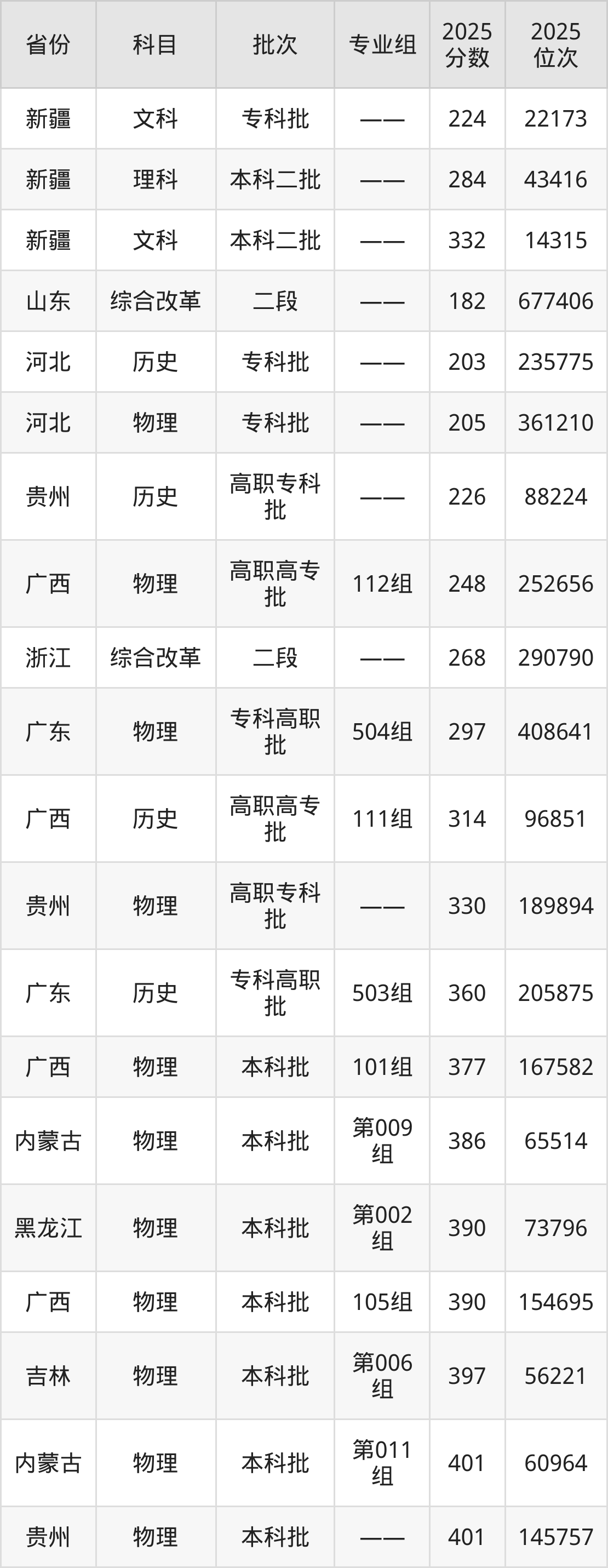 最低录取分数线是182分,对应位次是677406名,招生地区为山东;