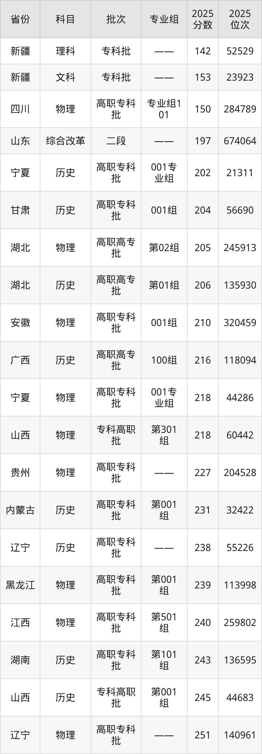 最低录取分数线是153分,对应位次是23923名,招生地区为新疆;