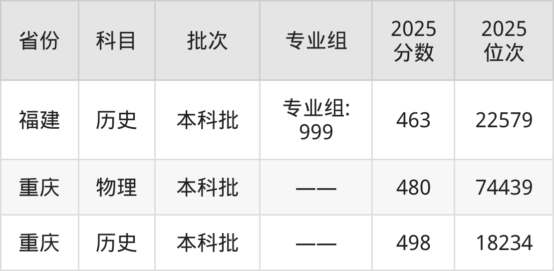 最低录取分数线是463分,对应位次是22579名,招生地区为福建;