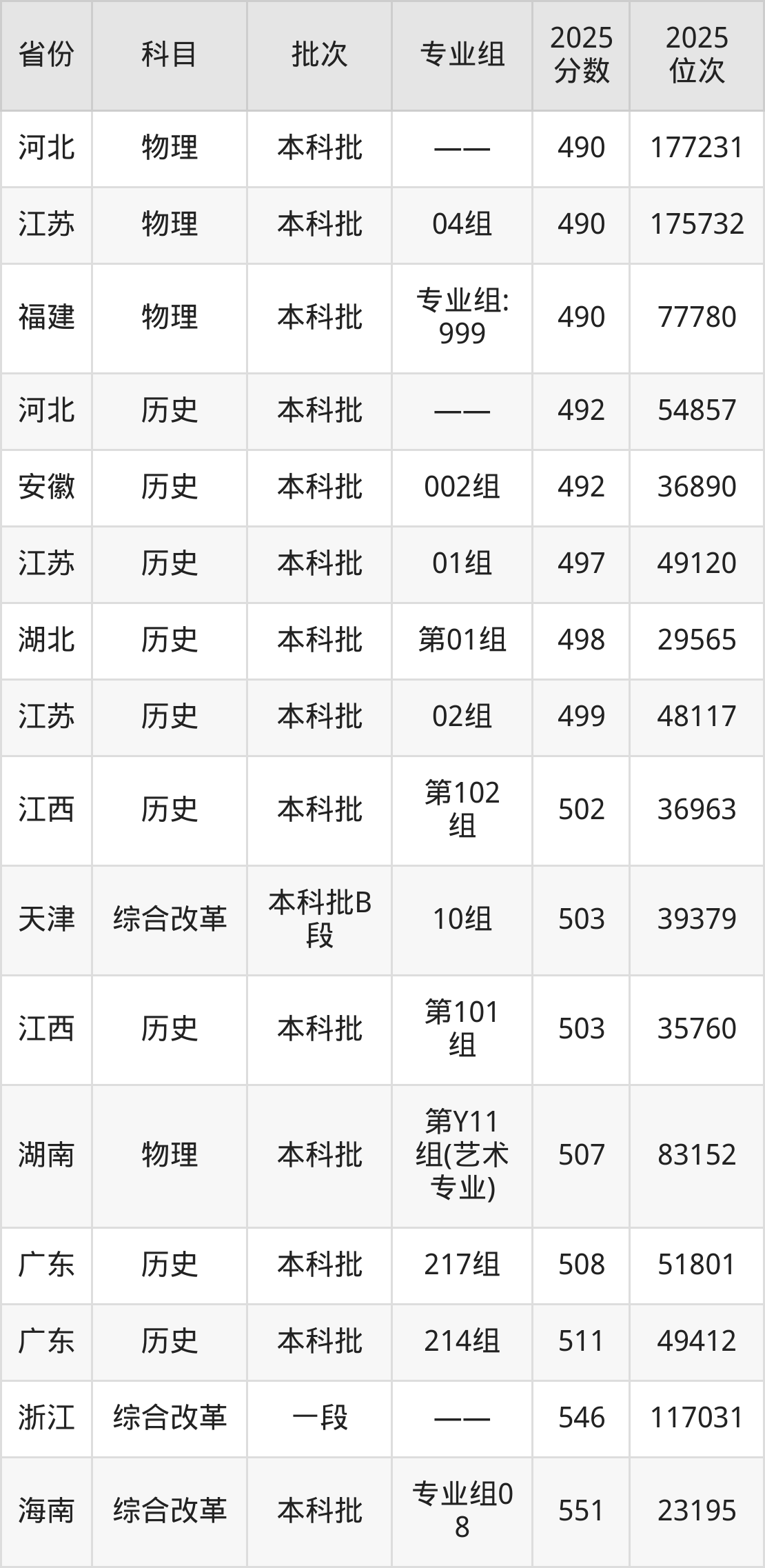 最高录取分数线是507分,对应位次是83152名,招生地区为湖南。