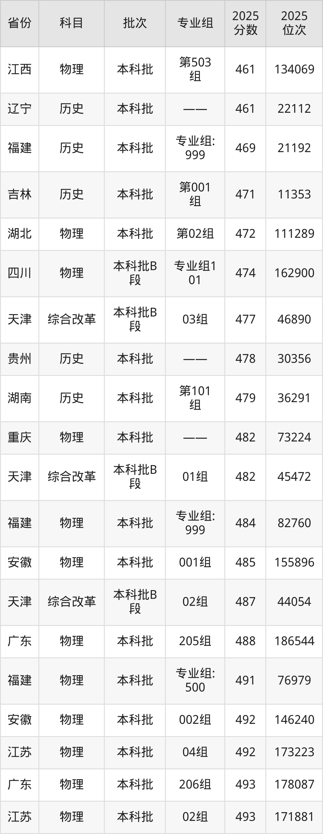 2025年南昌大学科学技术学院在各省普通批录取分数线一览表: