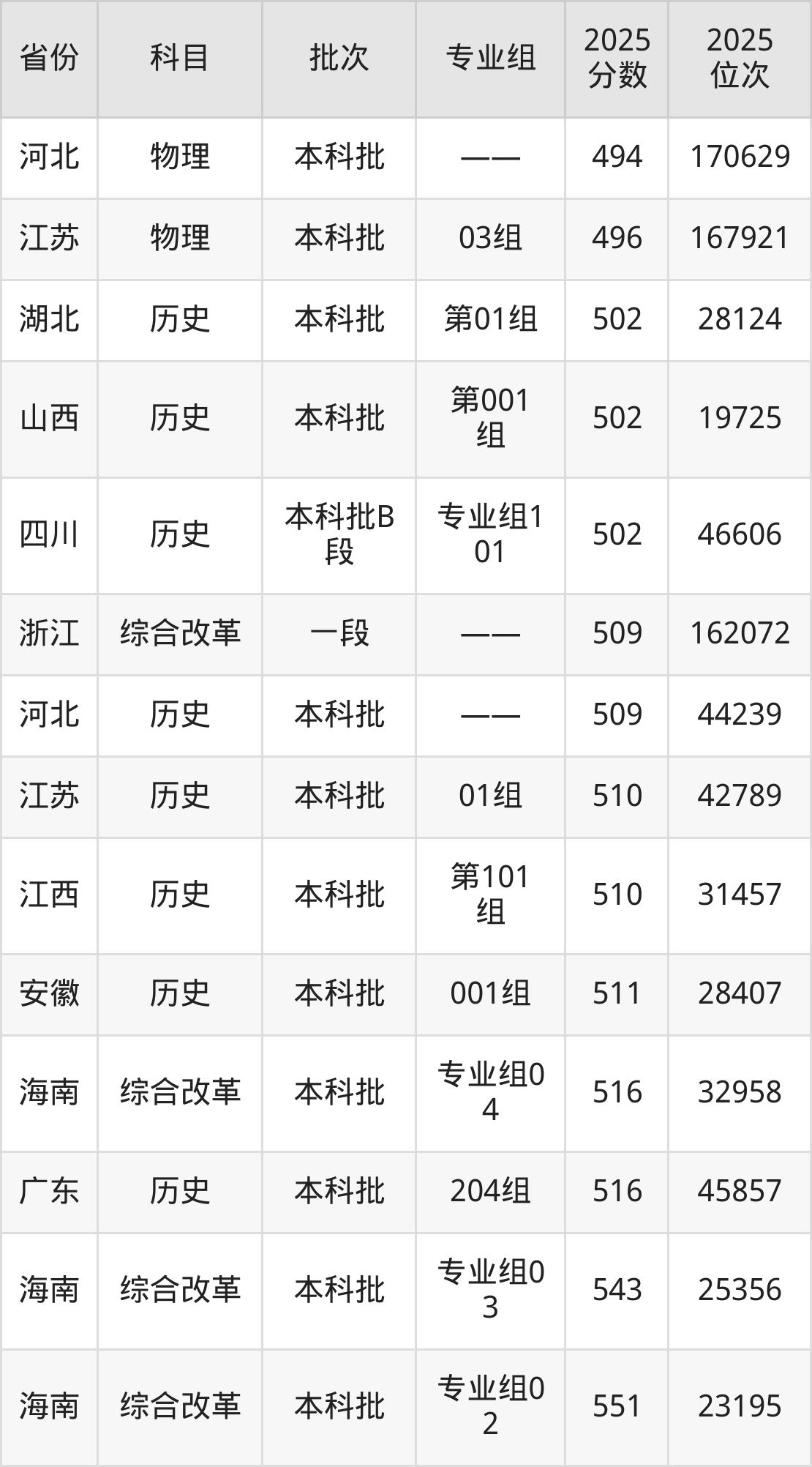 最高录取分数线是551分,对应位次是23195名,招生地区为海南。