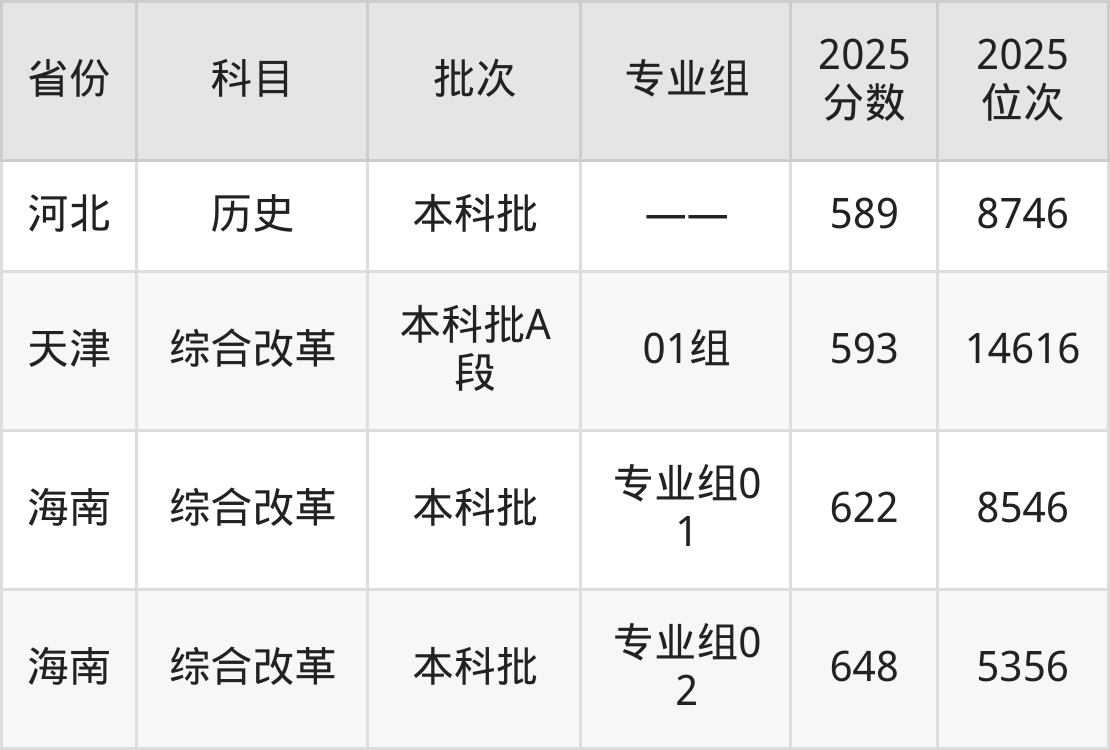 最高录取分数线是648分,对应位次是5356名,招生地区为海南。