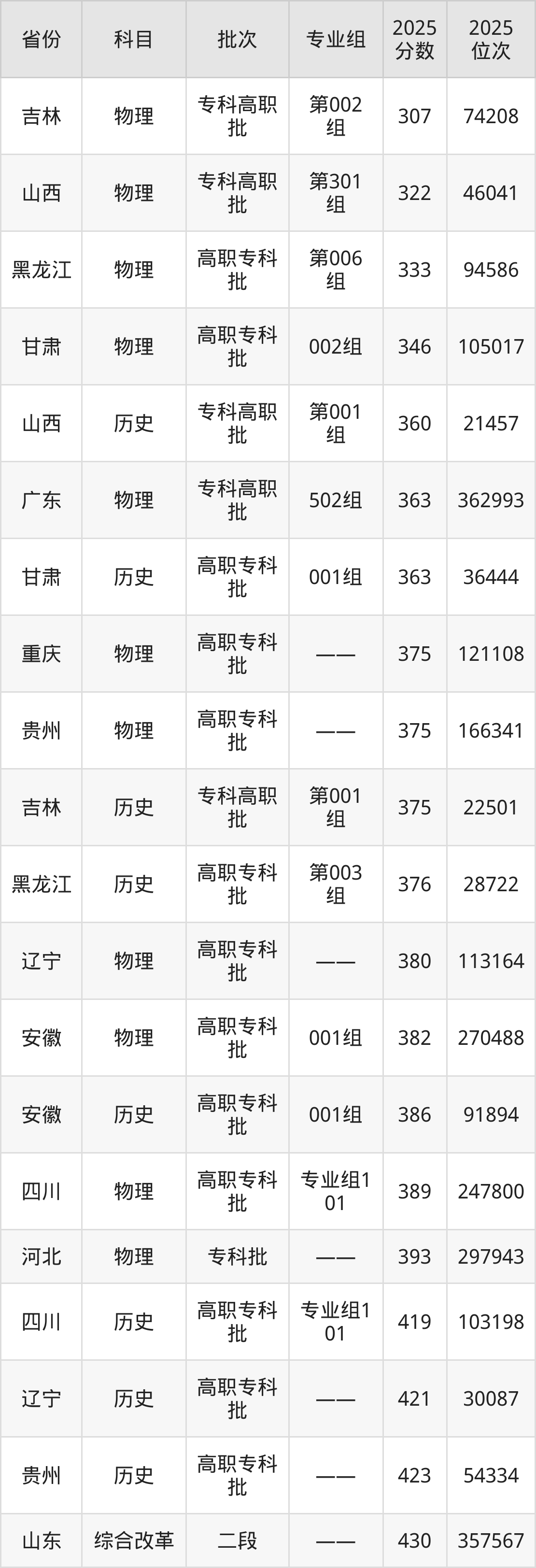 2025年黑龙江司法警官职业学院在各省物理类的录取分数线位于307分-393分之间。