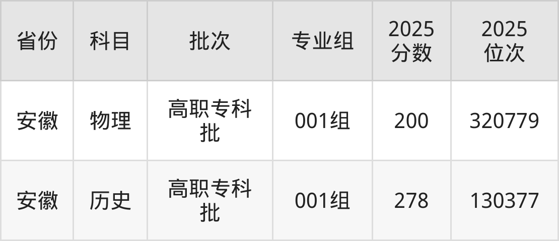 2025年安徽扬子职业技术学院在各省物理类的录取分数线为200分。