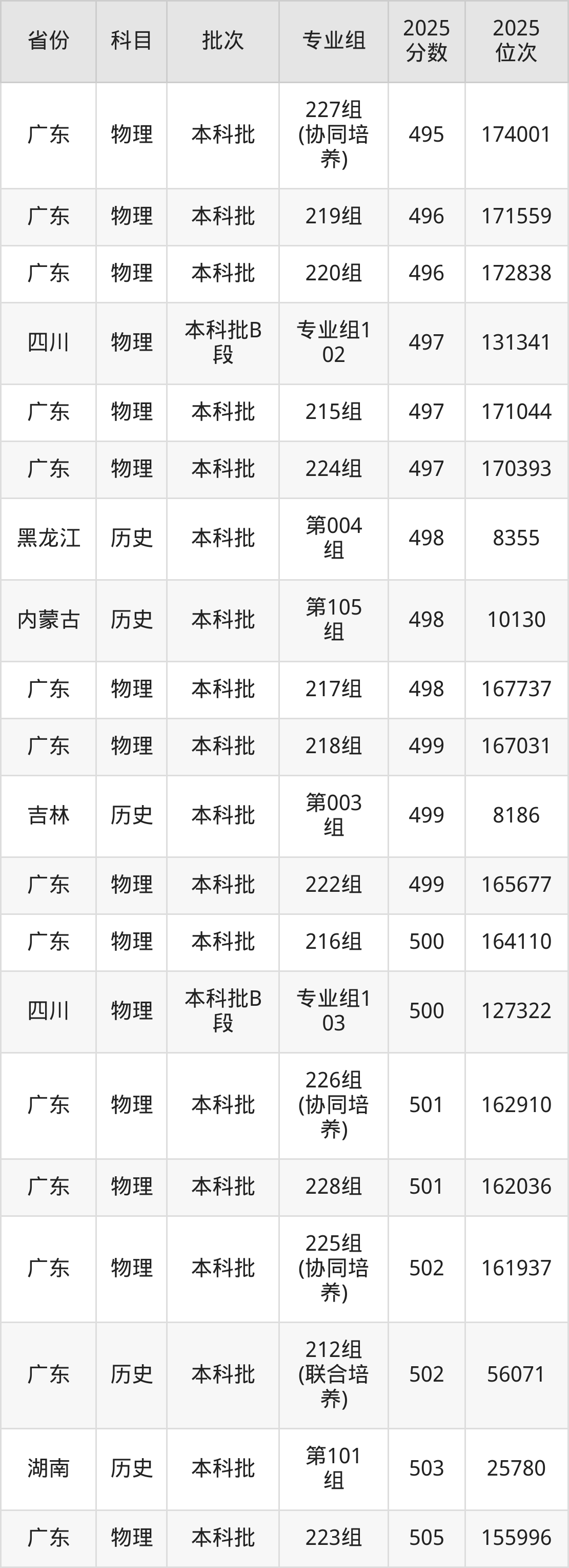 2025年韩山师范学院在各省普通批录取分数线一览表: