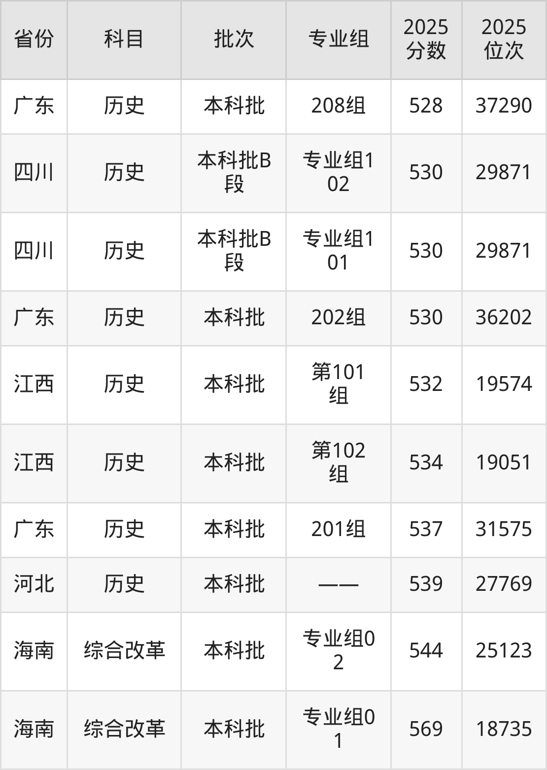 最高录取分数线是569分,对应位次是18735名,招生地区为海南。