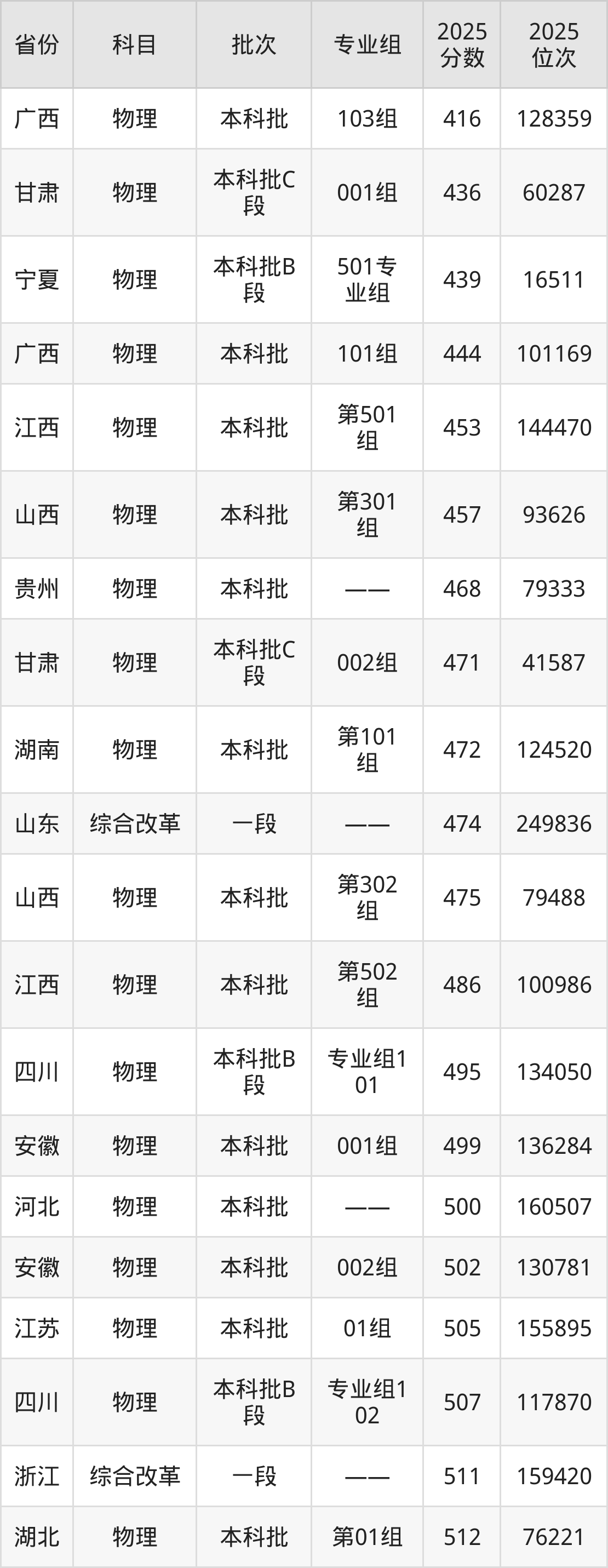 最高录取分数线是512分,对应位次是76221名,招生地区为湖北。