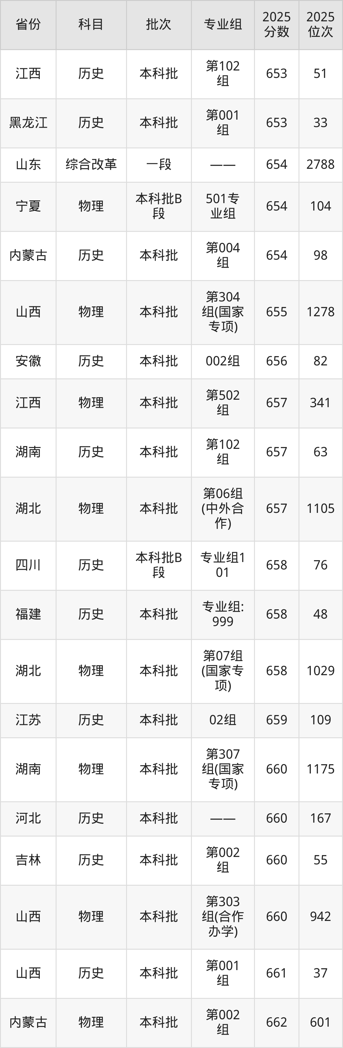 最高录取分数线是667分,对应位次是31名,招生地区为内蒙古。