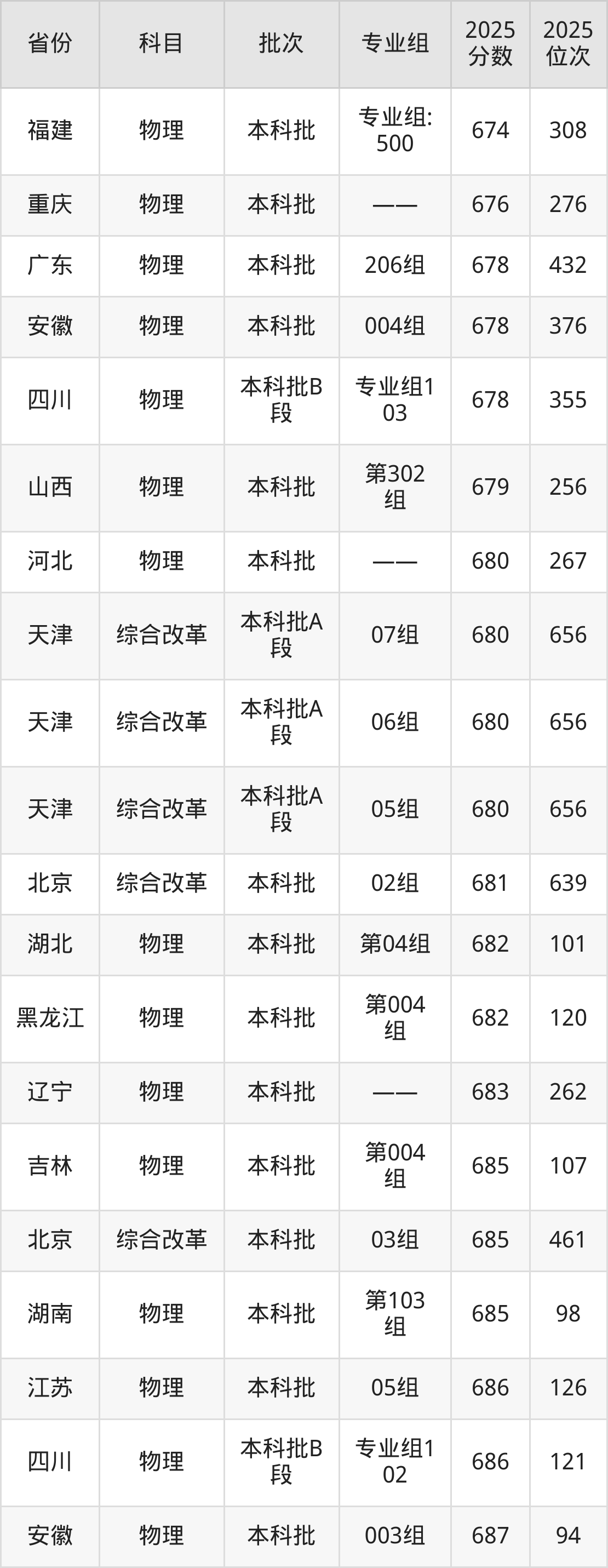 2025年上海交通大学在各省普通批录取分数线一览表: