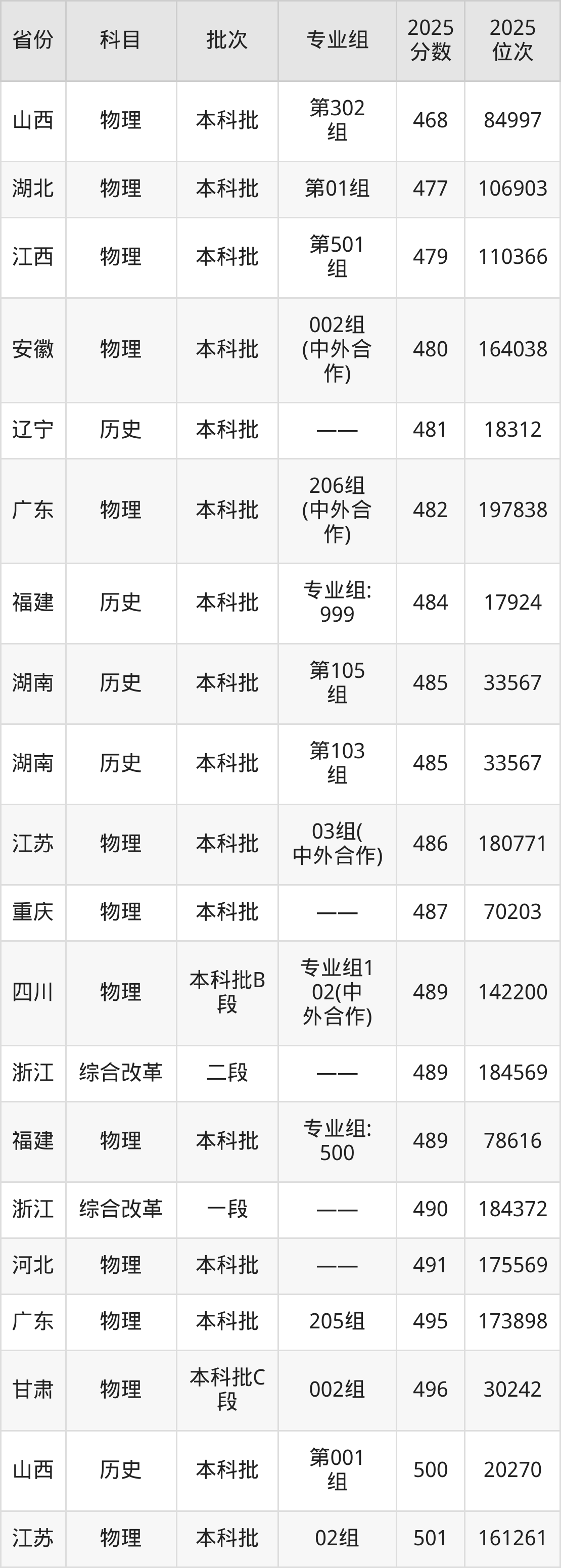 最低录取分数线是425分,对应位次是44325名,招生地区为上海;