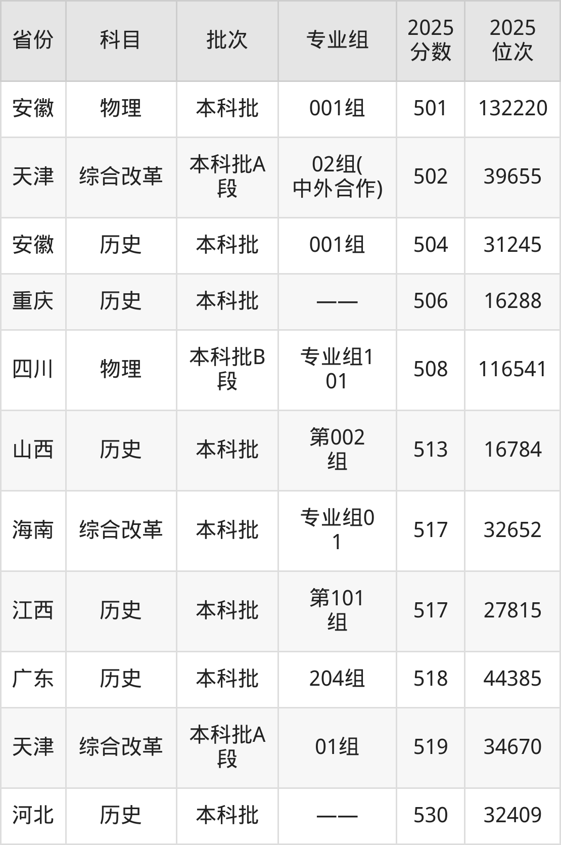 最高录取分数线是508分,对应位次是116541名,招生地区为四川。