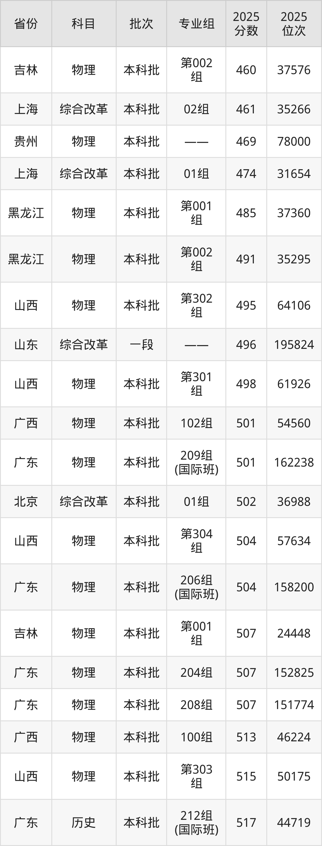 最低录取分数线是460分,对应位次是37576名,招生地区为吉林;