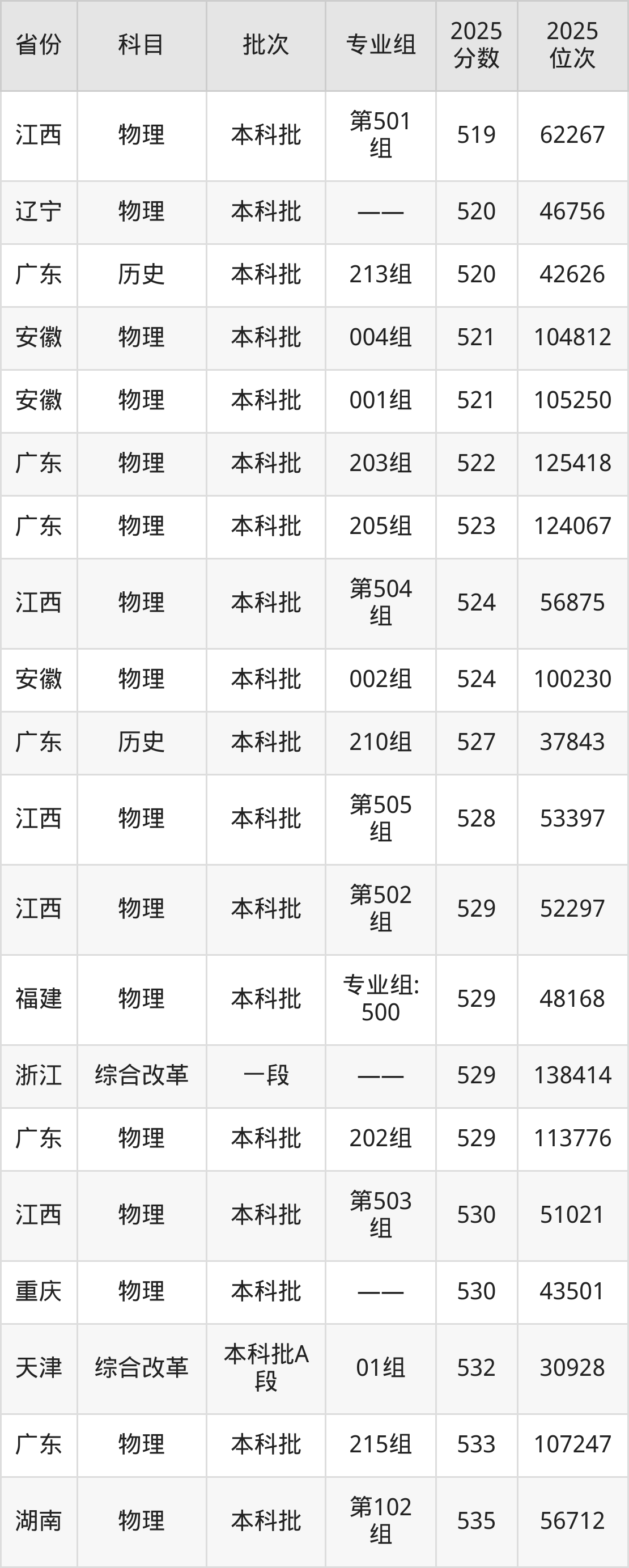 2025年广东药科大学在各省普通批录取分数线一览表: