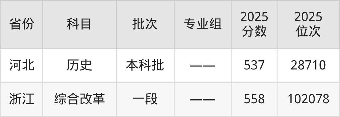 最高录取分数线是537分,对应位次是28710名,招生地区为河北。