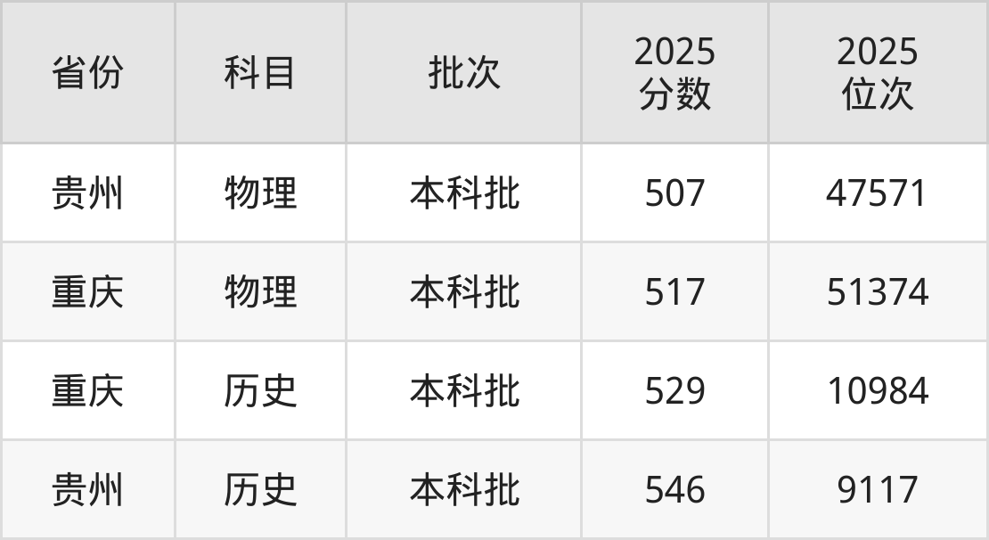 最低录取分数线是507分,对应位次是47571名,招生地区为贵州;