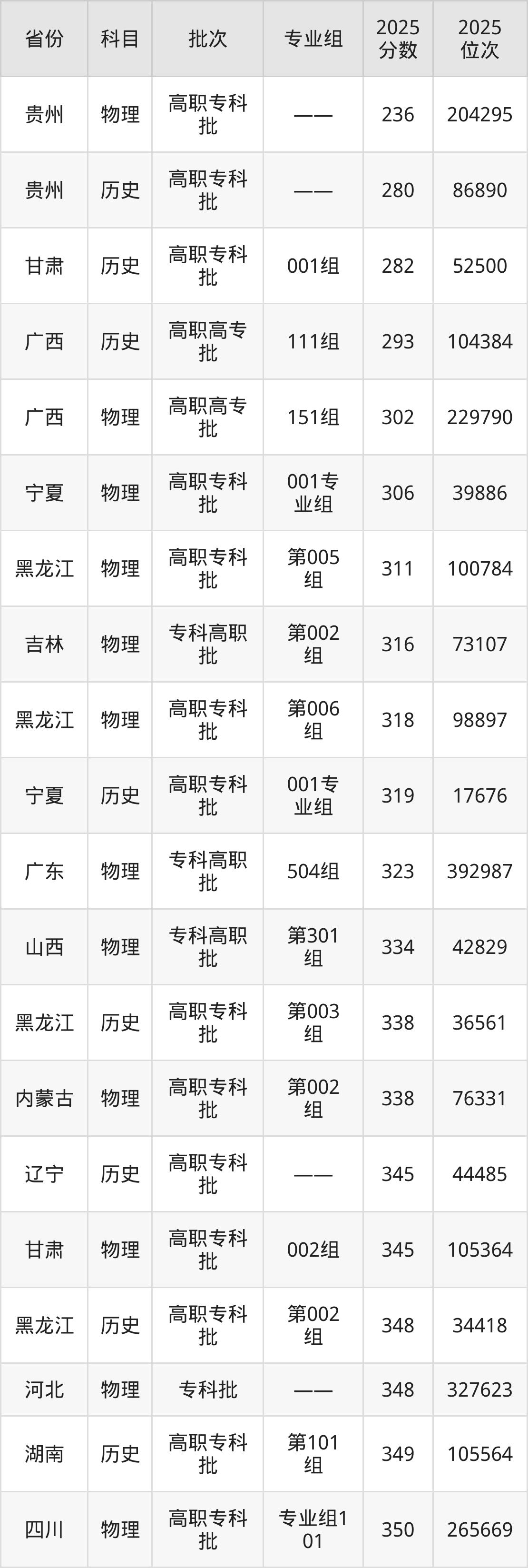 2025年黑龙江职业学院在普通批次招生,录取分数线是236分-425分。