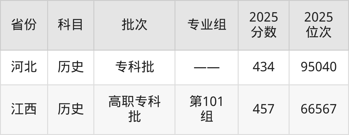 最高录取分数线是457分,对应位次是66567名,招生地区为江西。