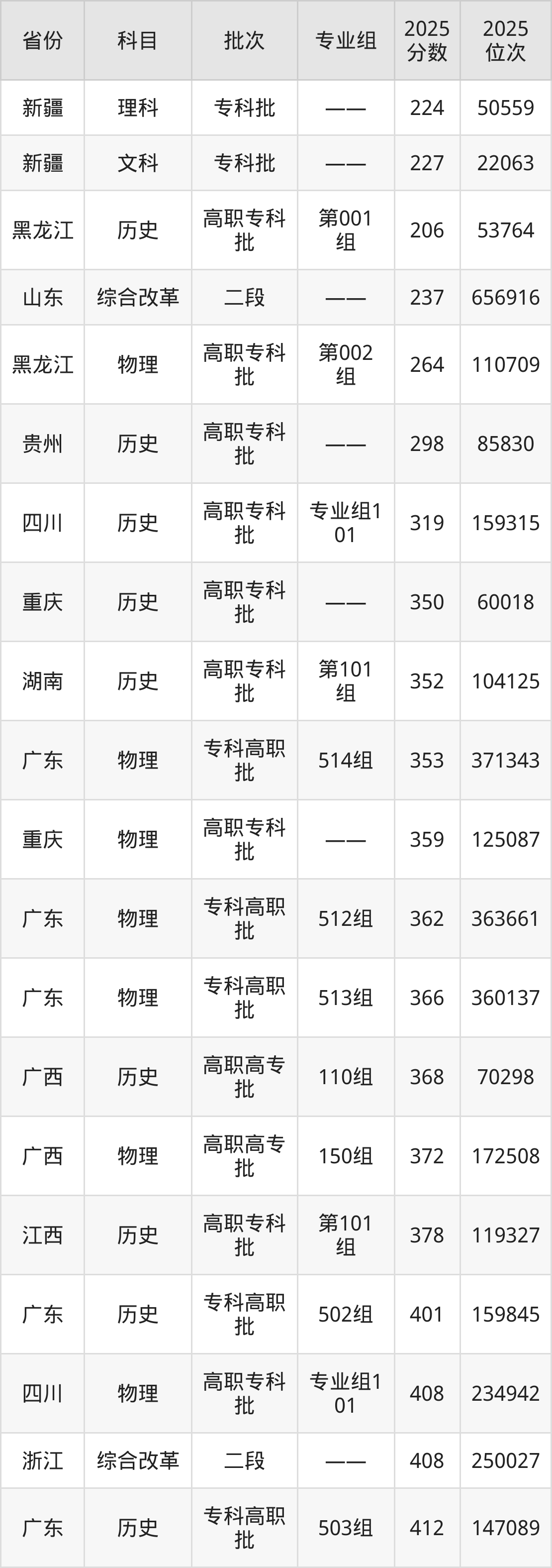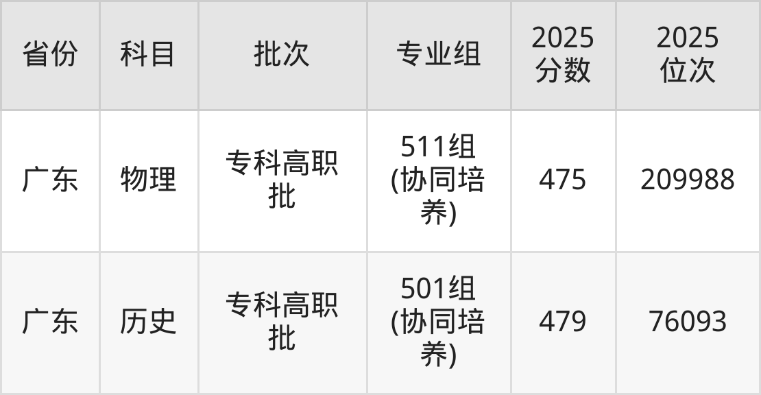 最高录取分数线是475分,对应位次是209988名,招生地区为广东。