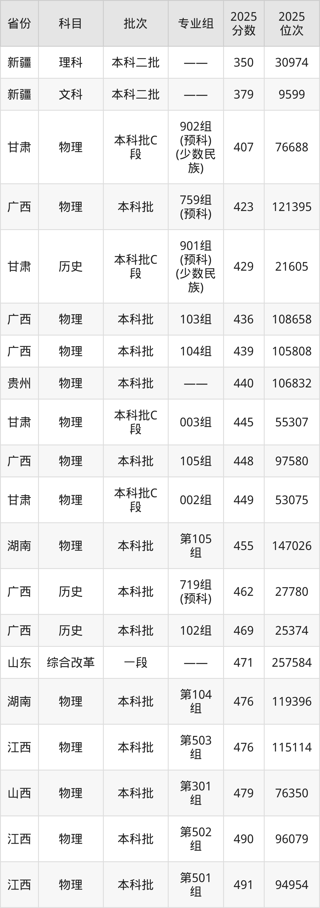 最低录取分数线是379分,对应位次是9599名,招生地区为新疆;