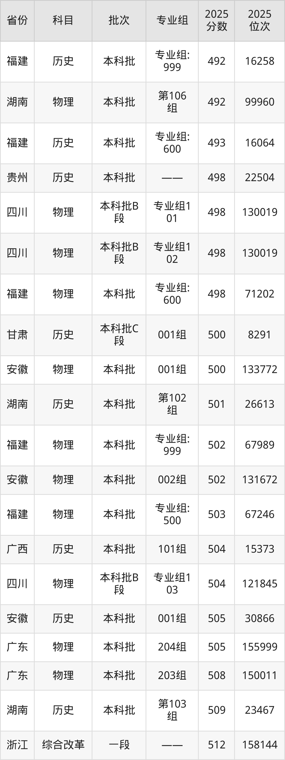 最高录取分数线是512分,对应位次是158144名,招生地区为浙江。