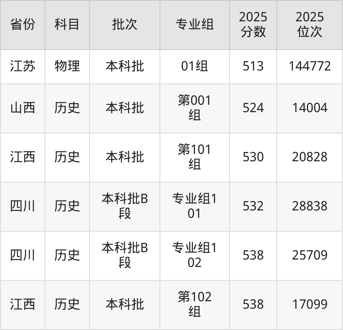 最高录取分数线是538分,对应位次是25709名,招生地区为四川。