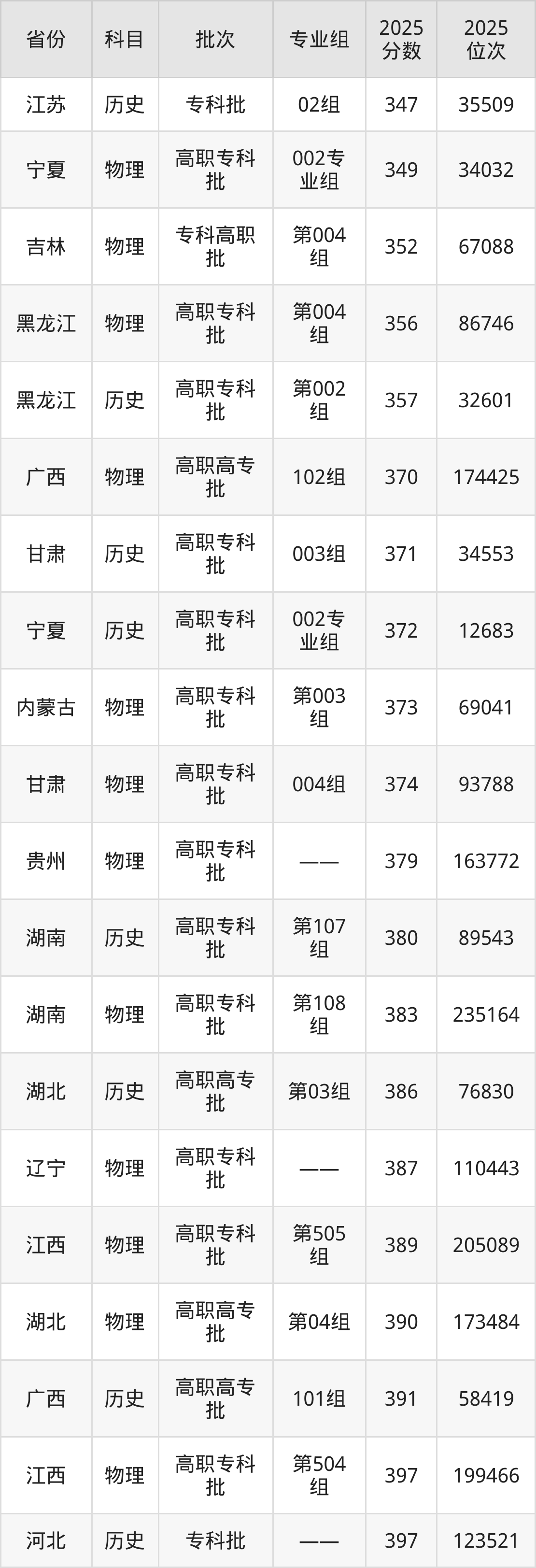 最低录取分数线是347分,对应位次是35509名,招生地区为江苏;