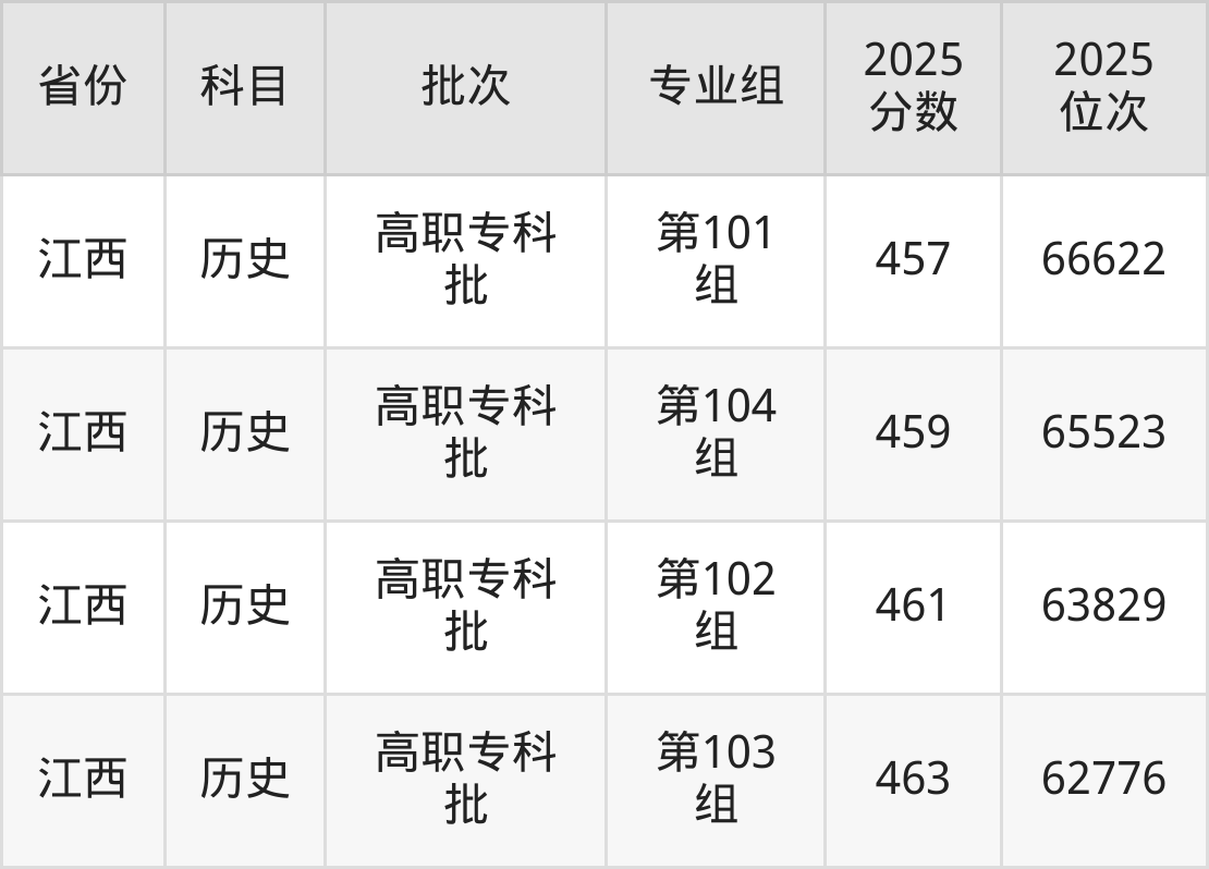 最高录取分数线是463分,对应位次是62776名,招生地区为江西。