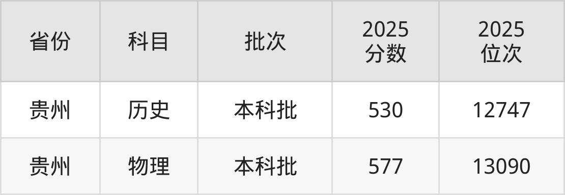 最低录取分数线是530分,对应位次是12747名,招生地区为贵州。