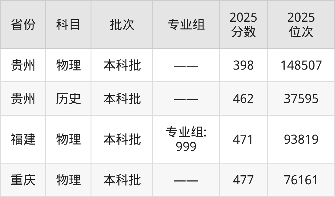 最低录取分数线是398分,对应位次是148507名,招生地区为贵州;