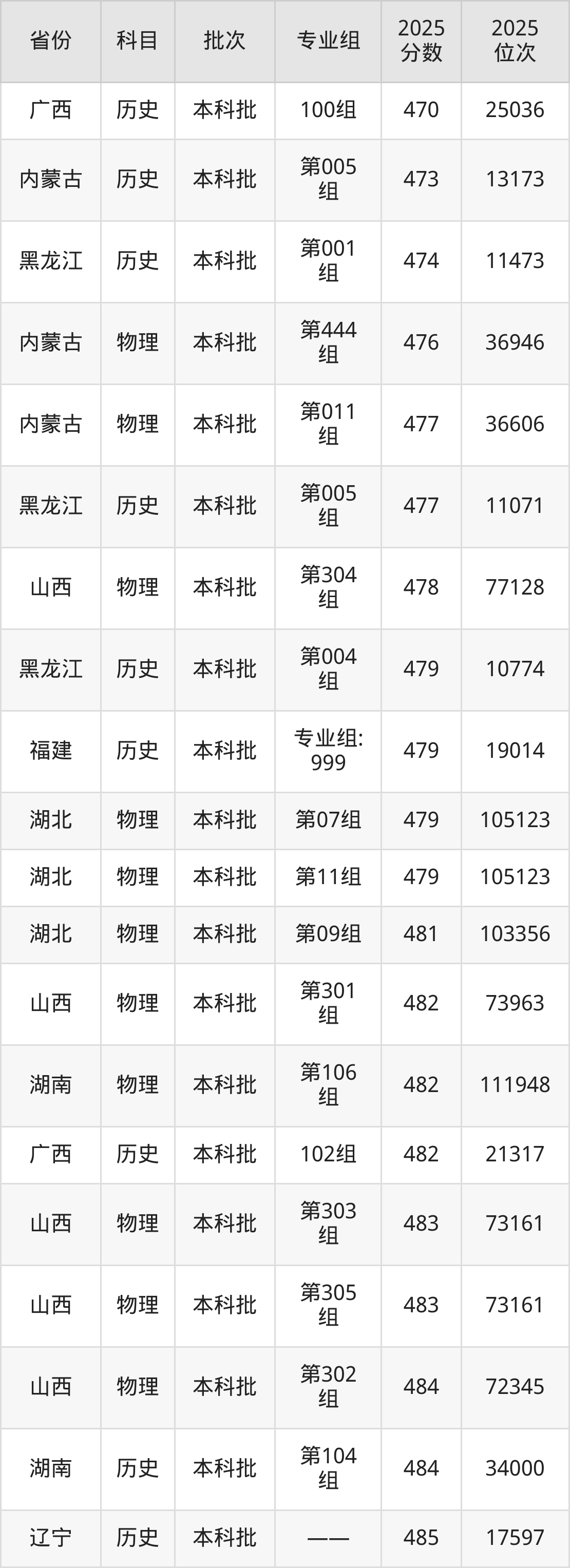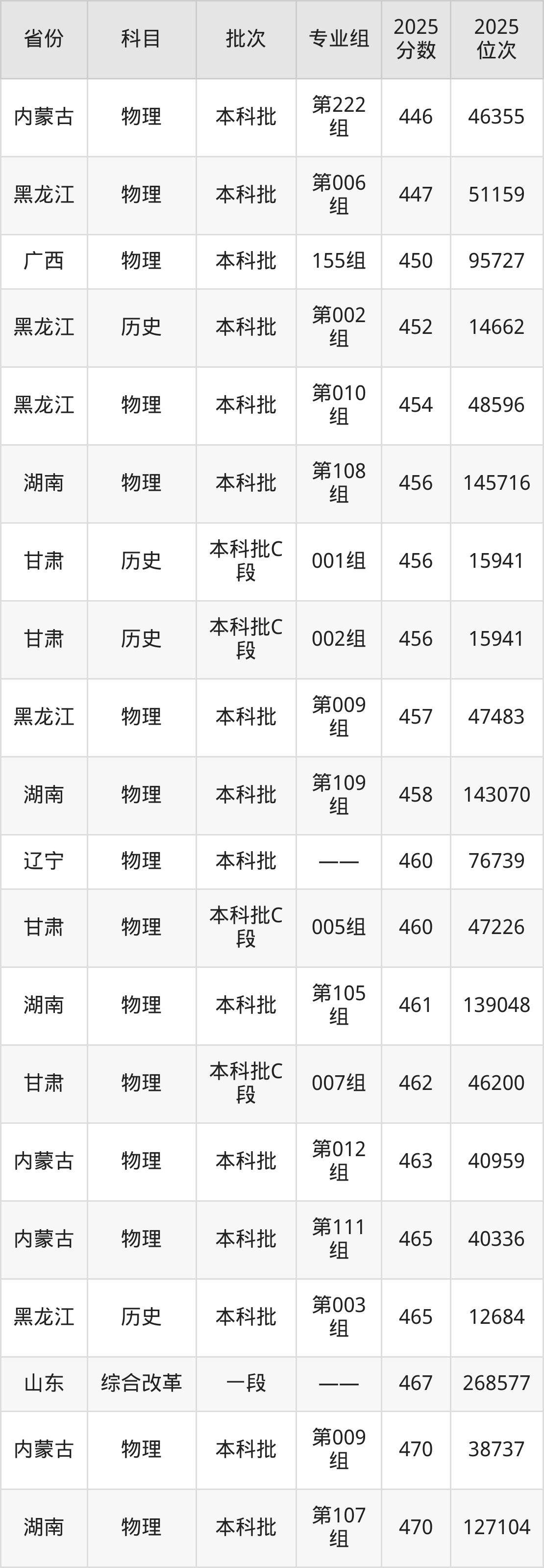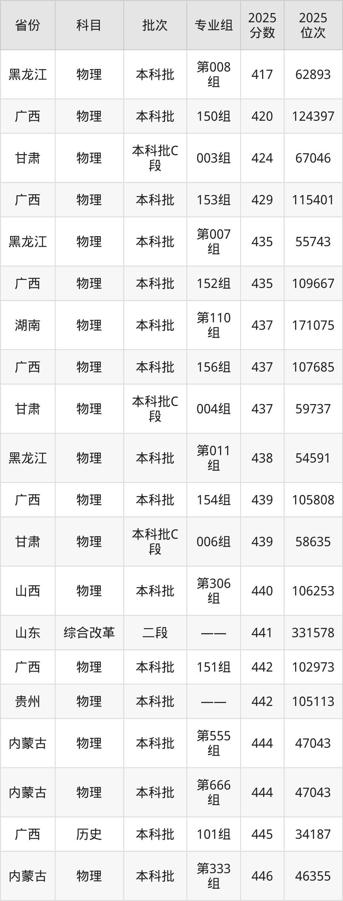 最低录取分数线是417分,对应位次是62893名,招生地区为黑龙江;