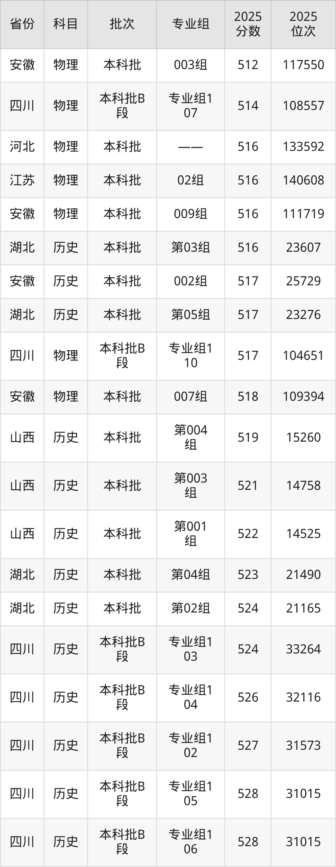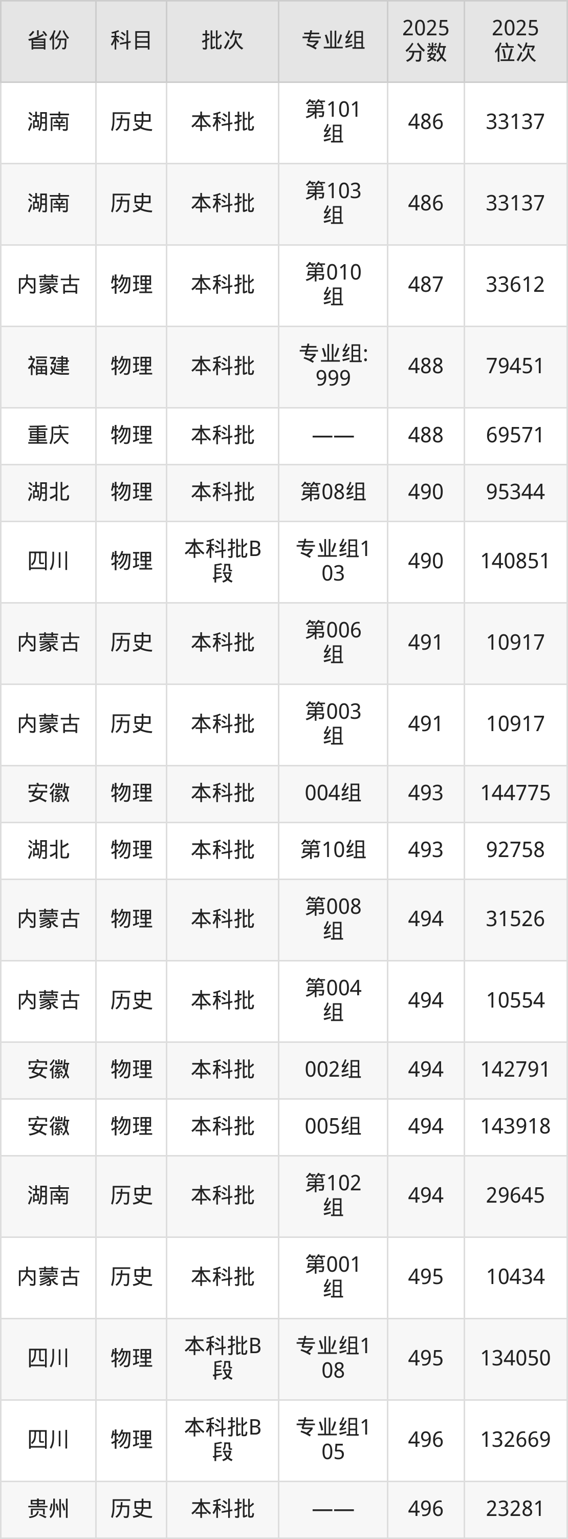 2025年山东女子学院在各省普通批录取分数线一览表: