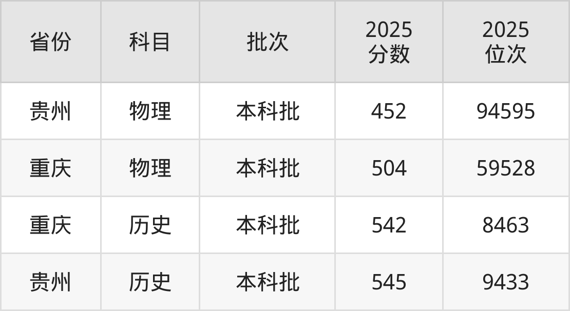 最高录取分数线是545分,对应位次是9433名,招生地区为贵州。