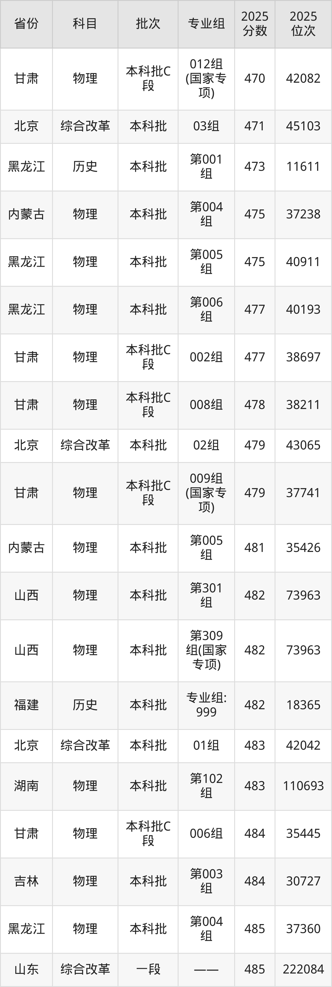 最低录取分数线是471分,对应位次是45103名,招生地区为北京;